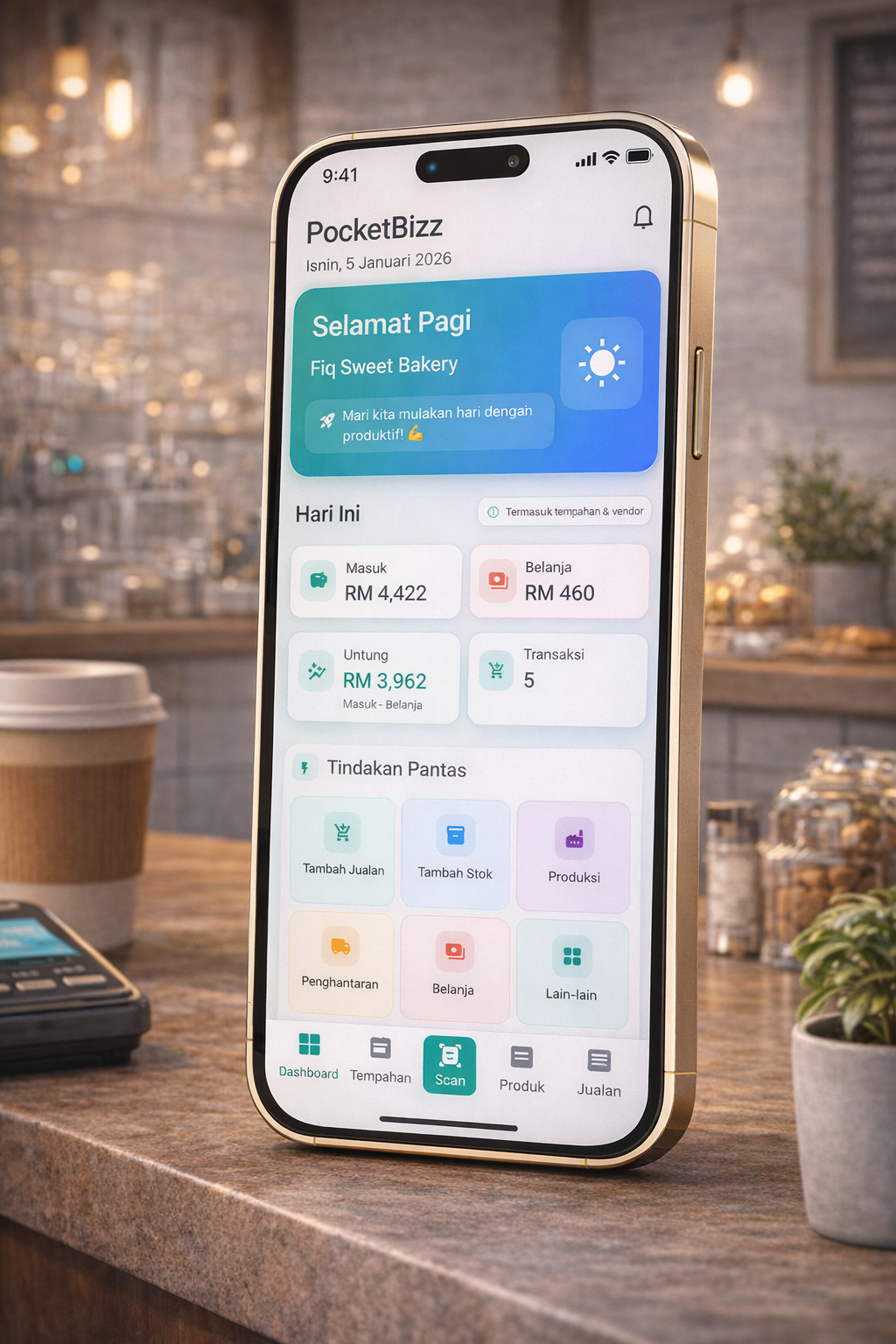 "Dashboard tu memang best! Buka app terus nampak untung hari ni, stok rendah, dan apa yang perlu buat. Tak perlu buka banyak file macam dulu. Decision making lebih cepat sebab semua info ada depan mata!"